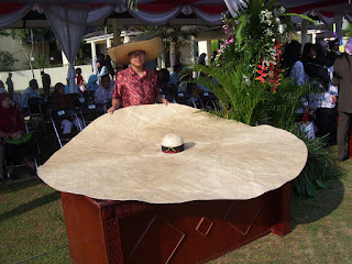 Bupati Ismet Iskandar menggunakan TopiBambu Raksasa |